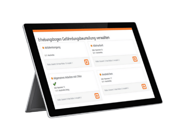- Direkter Start am Arbeitsplatz: Starten Sie die Gefährdungsbeurteilung (GBU) direkt am Arbeitsplatz.